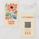 Hand Drawn Retro Colourful QR Code Boho Chic Flora Business Card