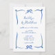 Hand Drawn Ribbon Doodle French Blue Wedding Invitation