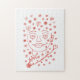 Hand-Drawn Romantic Line Art Face with Hearts and Jigsaw Puzzle