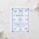 Hand drawn blue and white scribble whimsical retro French style wedding bridal shower Invitation. Celebrate your upcoming nuptials with this delightfully quirky and whimsical bridal shower invitation! The hand-drawn design showcases playful blue doodles like hearts, a ring, and a bow against a backdrop of pale blue and white stripes. The handwritten font and heart-adorned frame add an extra touch of charm, making it the perfect way to invite guests to your joyful celebration.