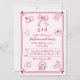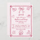 Hand drawn pink and white scribble whimsical wedding Invitation. Invite your guests with this quirky and whimsical invitation. It features hand-drawn illustrations of several whimiscal doodles including hearts, a ring and a bow in magenta on light pink and white striped background. The handwritten font and the frame with hearts at the corners add a delightful touch, perfectly reflecting the joy and excitement of your special day while inviting your guests in a unique and quirky manner. The back includes a QR code for online RSVP.