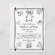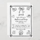 Hand drawn black and white scribble whimsical wedding Invitation. Invite your guests with this quirky and whimsical invitation. It features a hand-drawn illustration of several whimiscal doodles including hearts, a ring and a bow. The handwritten font and the frame with hearts at the corners add a delightful touch, perfectly reflecting the joy and excitement of your special day while inviting your guests in a unique and quirky manner. The back includes a QR code for online RSVP.