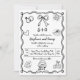 Black and white hand drawn scribble squiggle whimsical wedding Invitation in retro Fench style. This wedding invitation showcases a charming hand-drawn design filled with playful doodles like hearts, a ring, and a bow. Its quirky and whimsical style invites your guests in a distinctive way, enhanced by a handwritten font and a heart-framed border. This delightful presentation captures the joy and excitement of your special day, making it a memorable invitation for all.