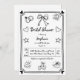 Hand drawn black and white scribble whimsical retro French style wedding bridal shower Invitation. A quirky and whimsical invitation that features hand-drawn illustrations of several whimiscal doodles including hearts, a ring and a bow. The handwritten font and the frame with hearts at the corners add a delightful touch, perfectly reflecting the joy and excitement of your bridal shower celebration.