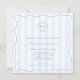 A modern and elegant light blue and white coastal bridal shower invitation incorporating a hand-drawn seashell and squiggle border and modern stripes trends for a contemporary and sophisticated bride. On the reverse are the same stripes and some additional text fields and a QR code (you can delete these if preferred). Shown here for a Bridal Shower but all of the text is customizable to your event.