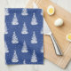 Hand Drawn Snow Covered Tree Pattern Indigo Tea Towel