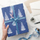 Hand Drawn Snow Covered Tree Pattern Indigo Wrapping Paper