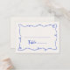 Celebrate in style with our quirky and fun wedding table place card featuring a hand drawn squiggle frame and casual handwritten script in a fun colour scheme of cobalt blue on ecru.