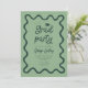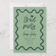 Funky graduation party invitation card featuring hand drawn squiggly and wavy frame. Green background.