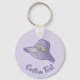Lilac, hand drawn woman's summer hat with yellow small bow ribbon. Custom background colour. Custom text on both sides.