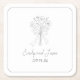 Hand Drawn Style Simple Thin Line Flowers and Bow Square Paper Coaster