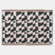 This abstract geometric features a pattern in black, white and pastel pink.