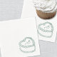 Personalised Vintage Cake Wedding Monogram Napkins. These custom wedding cocktail napkins feature a simple vintage-style cake illustration in emerald green, topped with the couple’s monogram initials and wedding date for a timeless and elegant touch.