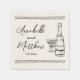 Personalized Hand Drawn Champagne Whimsical Wedding Napkins. This personalized wedding cocktail napkin features a charming and minimalist design, now set on an ivory or ecru napkin with crisp black fonts and artwork for a timeless, vintage-inspired look. A delicate illustration of a champagne bottle and glass is prominently displayed, symbolizing the festive occasion. The bride and groom's names and wedding date are elegantly showcased beneath the artwork in a mix of handwritten script and simple font, creating a stylish yet approachable feel.