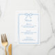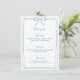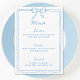 Set the tone for an elegant wedding with this refined blue menu featuring a delicate bow illustration and scalloped border. This timeless design is perfect for Something Blue, French Vintage, Coastal Chic, or Old Money-inspired weddings and events. Customisable for weddings, bridal showers, and upscale dinner parties.