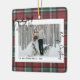 Add a cozy and classic touch to your tree with this square Christmas ornament featuring a warm holiday design centered on both sides. The ornament showcases a white rectangle overlay set against a rustic red and green tartan plaid background, giving it a timeless, festive look.