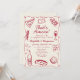Hand Drawn Wine Red Retro Italian Engagement Party Invitation