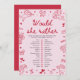 Hand Drawn Would She Rather Bridal Shower Game Invitation