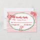 A simple and elegant hand drawn and written colourful retro wedding rsvp card. As you see it has a vintage modern white background with magenta red hand written script and watercolor green hand painted frame and pink stripes. And red hand drawn floral bouquet and champagne bottle and glasses and martini glass. You can edit the info by clicking on the personalise button.
