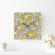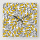 Hand Drawn Yellow Grey Leaves Pattern Square Wall Clock