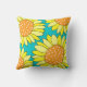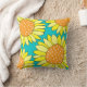 Hand Drawn Yellow Orange Turquoise Sunflowers Cushion
