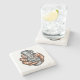 The coasters are gorgeous, a quality feel and heavy weight. They look like a precious archeological find. A rustic stone juxtaposed with a modern floral black and white print. I like the way the print goes slightly imperfect on the cut stone edges giving them a kind-of natural beauty.