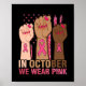 In october we wear pink breast cancer awareness month features with raising hand with colour skin tones, pink ribbon, breast cancer awareness for women, mum, daughter, grandma, sister, friends, family, breast cancer warrior