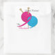 Cute stickers with a picture of two balls of knitting wool and wooden knitting needles poking through them. Ideal for all those craft people who love to knit with text reading Hand knitted by, and easy to customise with a personal name.