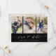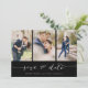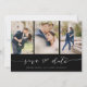 Pick the best pictures from your engagement shoot or your favorite pictures of the two of you for this perfect save the date. The words save the date are handwritten to give a personal feel to the card. The front has 3 images and the back has a large image with a white filter on top. Edit this save the date wedding card with your information and customize it for further for font and font color options.