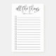Modern personalised note pad and features "all the things" at the top in handwritten style lettered typography. Personalise with your name or leave blank if desired. 14 lines with checkboxes help you track all of the important tasks that you need to get done! Bizzy Bee Creation ©