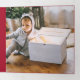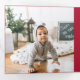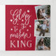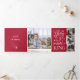 Add a total of six photos to this beautiful religious holiday photo card design in a unique trifold layout adorned with stars and featuring hand lettered typography. Front holds three square photos with "glory to the newborn king" in white hand lettered script typography on a festive red background. Personalise the inside with a custom pre-printed message or "year in review" update letter.