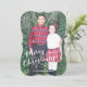 This 5x7 full bleed photo holiday card features hand lettered calligraphy and says "Merry Christmas." The back features a textured plaid pattern. Opt for a die-cut shape or textured paper for an extra special touch.