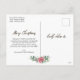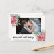 The design features red poinsettia floral bouquet with gold glitters around the custom photo. Married and merry is written in black slanting hand lettered script. At the back of the postcard add your personalised message.