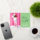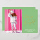 A cute photo holiday card features a hand lettered typeface of the words "Merry & Bright" on a colourful background. Personalise with your photo, name(s) and holiday message. The background colour can easily be edited in the design tool.