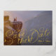Curly fun lettering "Save the Date" over full bleed photo. customise to change the fonts of the editable text and backer. Lettering by Becky Nimoy