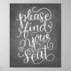 Modern and whimsical, featuring our exclusive hand-lettered typography that says "please find you seat"