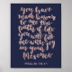 "You have made known to me the path of life. You will fill me with joy in your presence." Psalm 16:11. Customise the colour of this poster to complement the rose gold foil texture in our designer, Savannah's, own hand lettering. Verse's from God's bible are the most uplifting and encouraging words to read and receive on a regular basis. So decorate your home with them, and be in His presence and joy everyday. This poster comes with multiple textures!