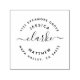 This self-inking stamp is perfect for any married couple looking for a personal touch to their post-wedding letters! This design keeps the classic round shape of the return address with your last name in the centre in a rustic, hand-lettered script, and 2 rings of text around it. The first ring, on the inside, features your first names and the second ring around the outside features your return address. To customise this design, simply click the "personalise" button and add your own details into the text boxes that appear.