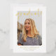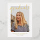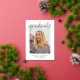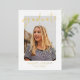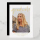 Modern graduation party invitations featuring the graduate's vertical photo with "graduate" in a hand-lettered gold foil script overlay. Personalise the front of the foil graduation party invites with the graduate's name, school name, and graduation year featured in gold foil lettering. The invite reverses to display your graduation party details in white lettering with a black background. The foil graduation party invites are perfect for celebrating high school and college graduates.