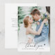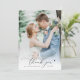 A simple wedding thank you photo card design with elegant hand lettered script. You can freely customise the image and other details.