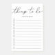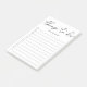 Chic personalised post-it note pad in crisp black and white features "things to do" at the top in hand lettered script typography. Personalise with your name or choice of text beneath, or leave blank if desired. 11 lines with checkboxes help you keep track of all your important tasks!
