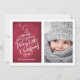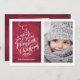 This Christmas card features hand lettered calligraphy ornament on a grungy red background. Add a photo to the back and your personalised text. Opt for a textured paper for something extra special.
