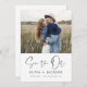 Modern and Elegant Photo Save the Date Wedding Card. The save the date invitation card includes white Hand Lettered typography and chic and simple design on a white background that you can add your customised engagement photograph picture to.