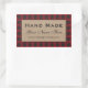 Hand Made Red Plaid Kraft Rectangular Sticker
