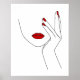 Hand On Woman's Face Line Art Poster, Woman Face Red Lips One Line Drawing, Woman With Red Lips And Red Nails Line Art, Lady In Red Lipstick, Woman's Face Line Art, Modern Minimalist Line Art, Trendy Print, Black And White Wall Art, Fashion Print, Feminine Art Print, Minimalist Wall Décor, Contemporary Poster