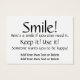 For the cost of a pack of chubby business / profile cards, keep a smile on hand to hand out to a friend ... or randomly to someone who seems to need it. It might make a difference in someone's life. I put this on basic white stock. Play with the stocks available. Zazzle offers quantity discounts. Enjoy ! Thank You ! Smile ... ; )