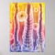This hand painted abstract artwork features surreal vertical structures in a mesmerising blend of purples, pinks, yellows, and blues. With a dreamlike sense of depth and motion, the spiral columns and floating orbs evoke a fantastical world of energy and imagination.