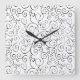 Hand-Painted Black Curvy Pattern on White Square Wall Clock
