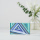 This hand-painted geometric abstract design features a bold triangular composition layered with shades of blue, teal, and grey. Each angled band is meticulously outlined in black, creating crisp edges that emphasize the symmetry and depth of the pattern. The design carries a mesmerising, almost optical quality as the nested triangles draw the eye inward, producing both movement and balance. The cool colour palette blends aquas, indigos, and slate tones, evoking a sense of calm strength and modern sophistication. With its striking geometry and handcrafted artistry, this piece radiates a timeless yet contemporary aesthetic.