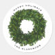 Hand Painted Boxwood Wreath Happy Holidays Classic Round Sticker